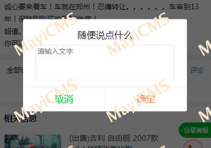 2,演示站只演示外觀效果,未配置微信、QQ、短信、手機網頁分享縮略圖、各類在線支付參數接口以致相關功能不能正常使用,實際購買后都是可以正常配置使用的